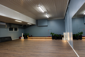 hyvät omat salit ryhmäliikuntaan ja joogaan,